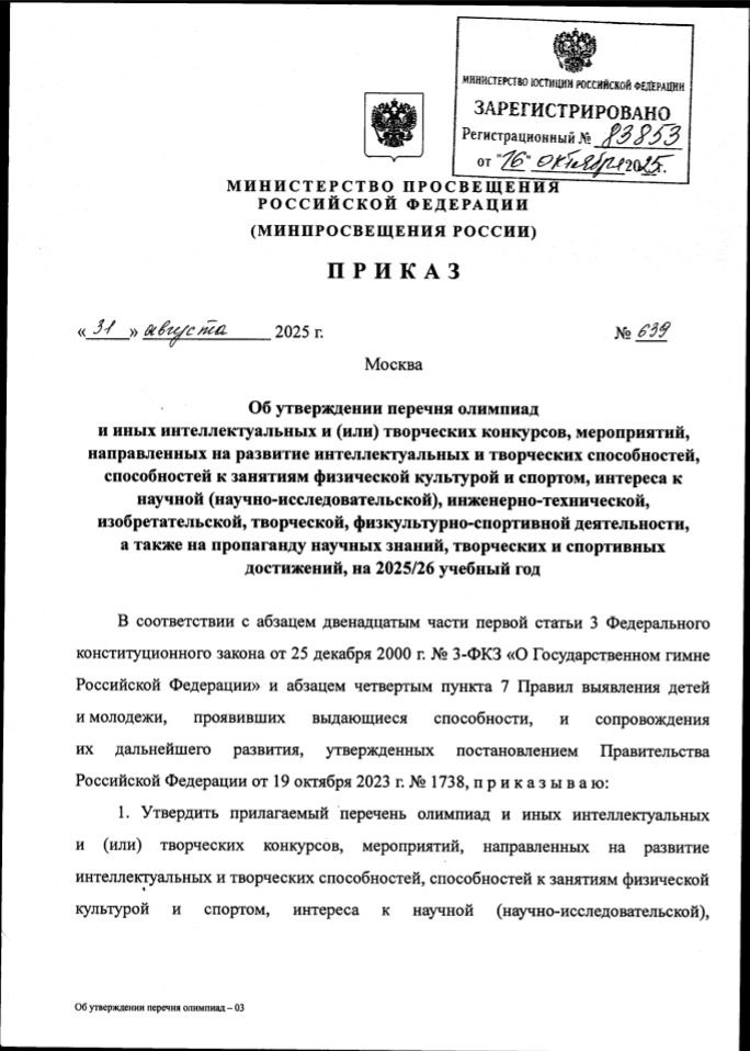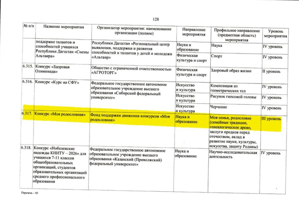 Конкурс «Моя родословная» включен в перечень олимпиад и конкурсов № 639 на 2025/26 учебный год