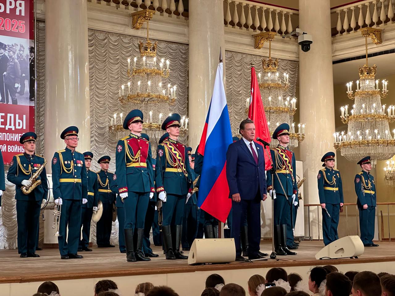 3 сентября состоялось Торжество в честь 80-летия Победы над милитаристской Японией и окончания Второй мировой войны в Колонном зале Дома Союзов — участники и гости. В программе мероприятия церемония награждения.