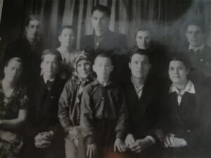 Семья дедушки (он в центре с моей прапрабабушкой Евдокией, слева в нижнем ряду сестра прадедушки Валентина с мужем, справа прадедушка Сага и сестрой Анной).