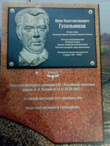 Приказом президента компании ОАО «РЖД» В.И. Якунина №73 от 28.05.2007 г. Алтайской дистанции пути присвоено имя Ивана Константиновича Гусельникова