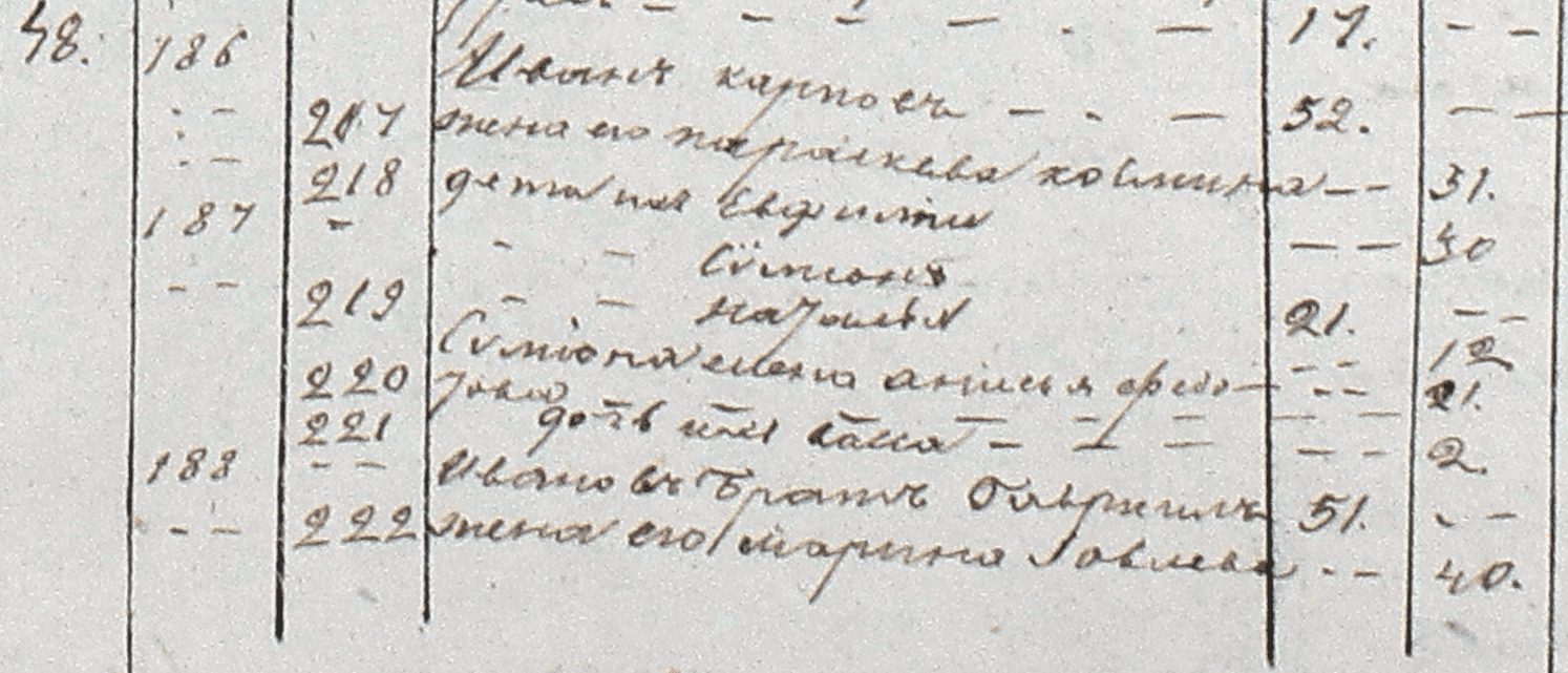 Уроженец деревни Заручье Мышкинского уезда Ярославской губернии. На фото состав семьи из исповедных ведомостей 1850 года.