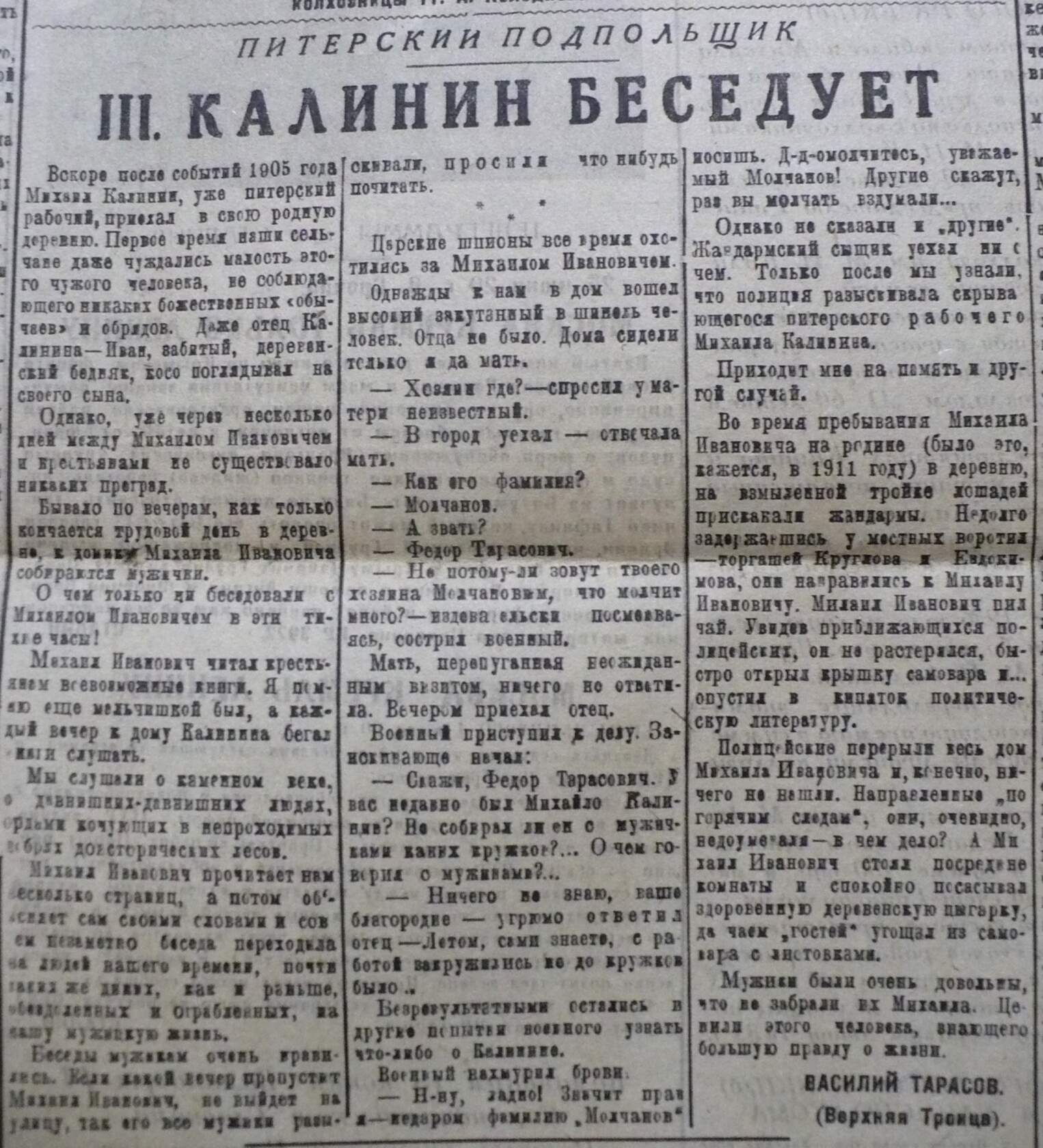 Уроженец деревни Верхняя Троица Корчевского уезда Тверской губернии. О прапрадеде читала в воспоминаниях прадеда. Фамилия прапрадеда была Молчанов. Прадед взял фамилию Тарасов в честь своего деда.