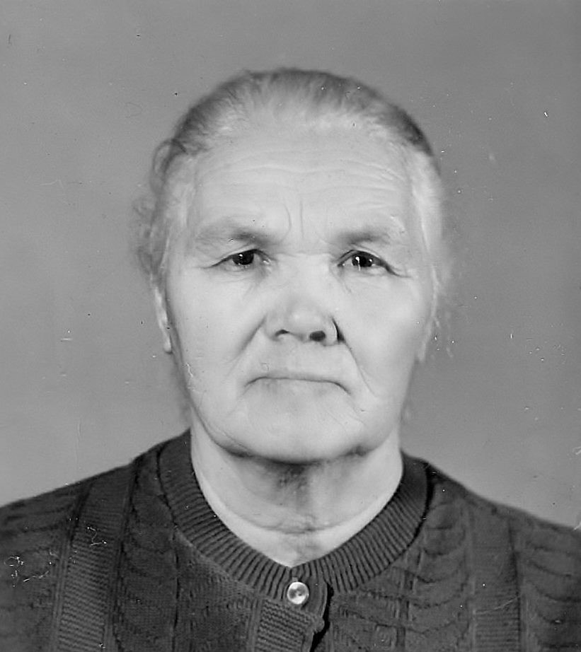 Когда началась война, все родственники съехались к ней в село. Ее папа сапожничал и этим кормил большую семью. В 1942 году немцы заняли село. Их многочисленное семейство выселили из дома в сарай. В доме жили немцы. Было очень тяжело, голодно и страшно. Никто из односельчан не выдал семью председателя. В 1943 году село освободили от немцев. Она до конца своих дней помнила и рассказывала страшные события войны.